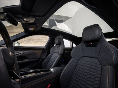 Indvendigt byder Audi e-tron GT på et luksuriøst og rummeligt interiør, der kombinerer høj kvalitet med avanceret teknologi. Det digitale cockpit og det centrale MMI touch-display giver intuitiv adgang til bilens mange funktioner, mens komfortable sportsæder og premium materialer sikrer en behagelig rejse, uanset distancen.