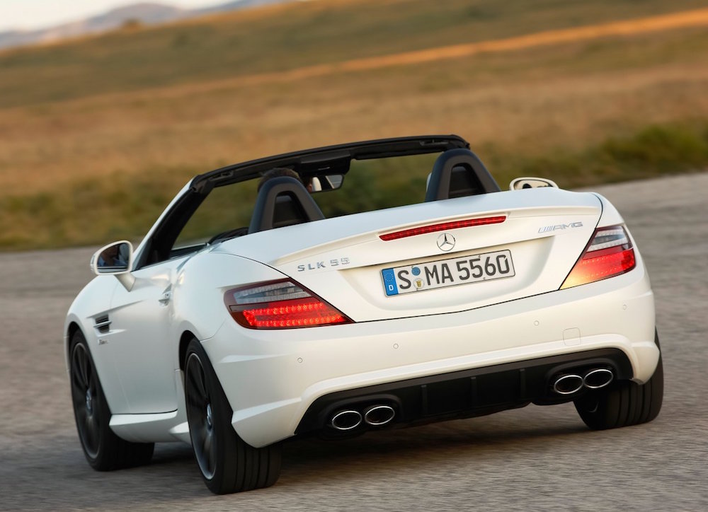 At skære to cylindre fra SLC-modellen sender den tilbage til fortiden, hvor SLK-modellen blev introduceret i den første AMG-udgave. SLK 32 AMG hed den, og under hjelmen husede den en 3.2-liters V6’er med kompressor.