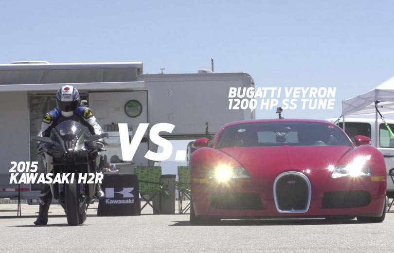 VIDEO: Tæsker Kawasaki H2R Bugatti Veyron i et dragrace?